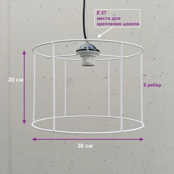 - Диаметр 30 см, высота 20 см, 6 ребер жесткости (с местом крепления патрона Е27)